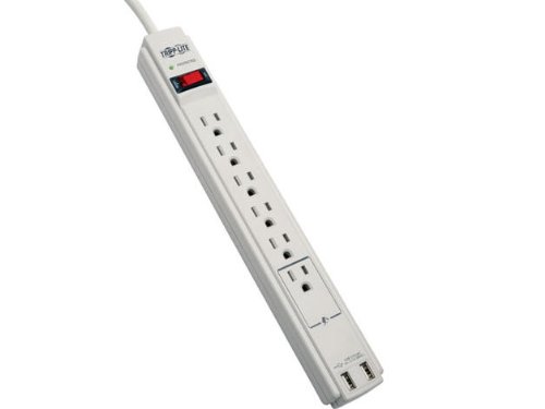 TRIPP LITE TLP606USB Surge Protector Strip Dual 2.1amp total USB Charging ports 6 Outlet 6-Foot Cord 990 Joule 120V