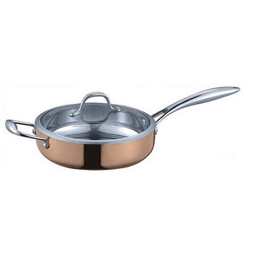 -. Title : Fancy Cook 5-ply Copper Saute Pan with Tempered Glass Lid - 12 in.
