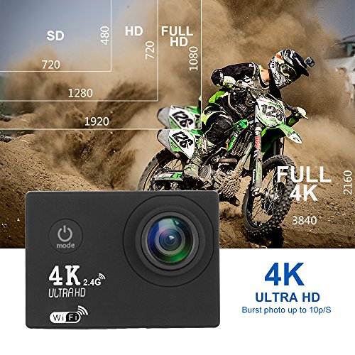Action Camera 4K Ultra HD WiFi Waterproof Sport Video Camera 2 Inch LCD Screen 16MP 170 Degree Wide Angle 6 Layers Lens with 2.4G Remote
