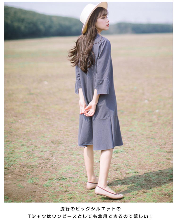 | ロング丈ビッグシルエットベーシック半袖Tシャツワンピースが登場!流行のビッグシルエットのTシャツはワンピースとしても着用できるので嬉しい!ロング丈で気になるヒップ周りもカバーしてくれます!ベーシックなデザインで何にでも合わせやすいのでこれからのシーズンに重宝できること間違いなし! | |