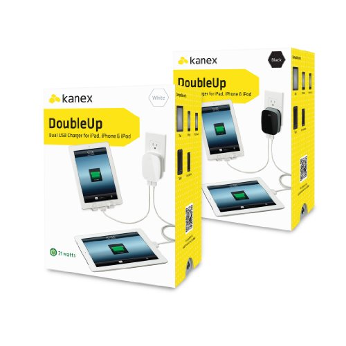 Kanex DoubleUp - Two USB 2.1 Amp (per Port) Wall Charger for IPAD, IPHONE, Smart Phones and Tablets Devices (Black) (SYD2PTB)