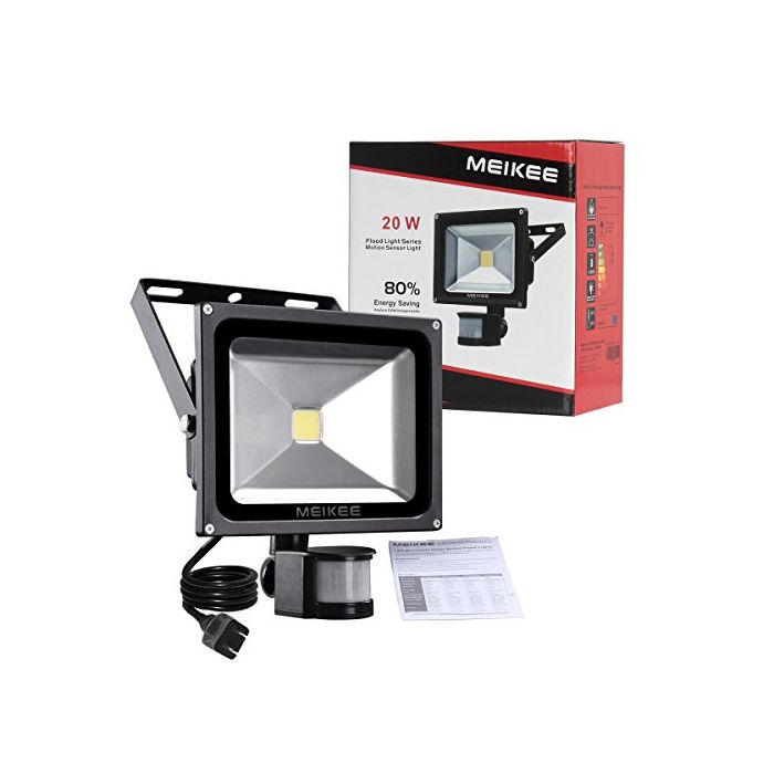 원본상품명: MEIKEE 20w 超高輝度LEDフラッドライトPIR屋外センサ投光器100wハロゲンランプ相 防水照明 駐車場、玄常夜、倉庫、町の防犯に最適(白色)
