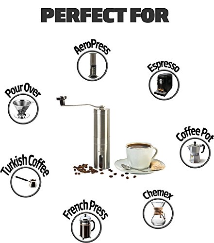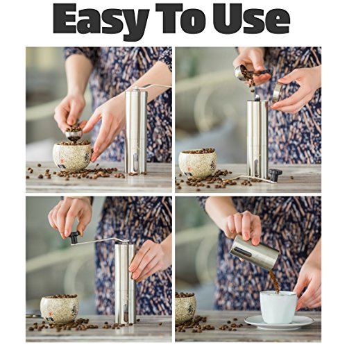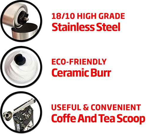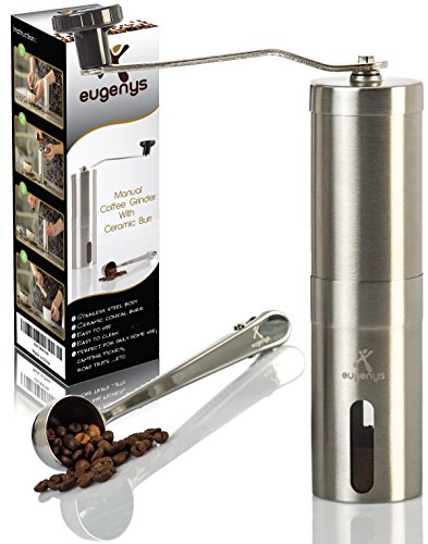 -. Title : Eugenys Manual Coffee Grinder - Best Ceramic Burr Grinder for Precision Brewing - Eco Friendly 18/10 Stainless Steel - Perfect Conical Burr Mill for Home & Traveling - Bonuses Coffee Scoop & EBook