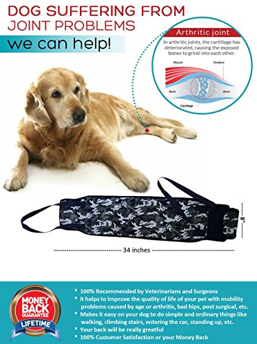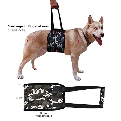 -. Feature : ✔ PROTECT YOUR BACK: This Dog Mobility Sling holds a Medium to Large Dog from 55 to 65 lbs. It is designed to support your pet with ease and also protect your back from unnecessary strain. The handle helps lift and assist Dogs suffering from Arthritis Dogs with Mobility problems or post-surgical rehab, Injured Dogs, Senior Dogs, Weak Joints, Weak Hind Legs. Our purpose is to help your pet when doing ordinary things like walking climbing stairs entering or exiting the car. / ✔ RELEASE THE PAIN: This is an extremely useful Dog Assist Lifting Harness that provides the support needed for your furry friend since it is so important to keep those arthritic joints moving to prevent stiffness and decrease pain. Your arthritic dog may have less enthusiasm about walks but exercise is still essential for them. / ✔ GREAT FOR TRAVELING: Whether you're going for a short drive or a longer trip it just takes a minute to roll up our Rehabilitation Harness and it's ready to go. It's simple to clean too you can put it into your washing machine or use a baby wipe and hang up to air dry. NEVER put it into the dry machine / ✔ 100% TOTAL SATISFACTION GUARANTEE OR YOUR MONEY BACK. We totally stand by the quality of our product and if it doesn't make the life of your beloved dog better we'll return your money no questions asked. So grab yours today by clicking the ADD TO CART button. / ✔ IMPROVE THE LIFE OF YOUR BABY: Your sweet aging dog has been by your side all these years and now that he/she is getting older you want to take care of them by providing the best quality of life. This Dog Lift Harness is VET recommended to help your furry friend suffering from arthritis or other debilitating ailments. Our canine aid harness is a great tool for improving your pet's mobility and making the life of your loving fur baby as comfortable as possible (good for male and female dogs)