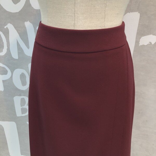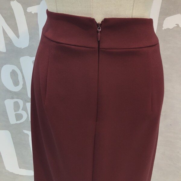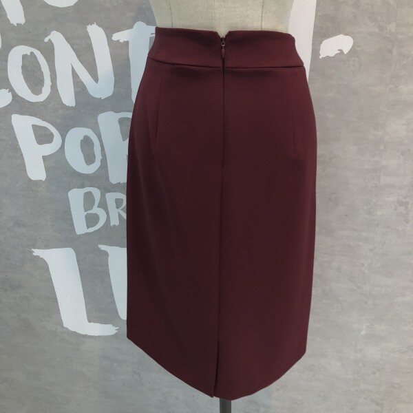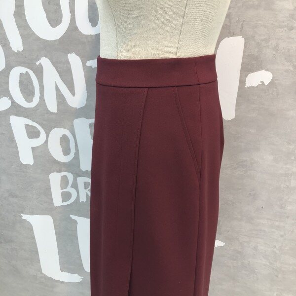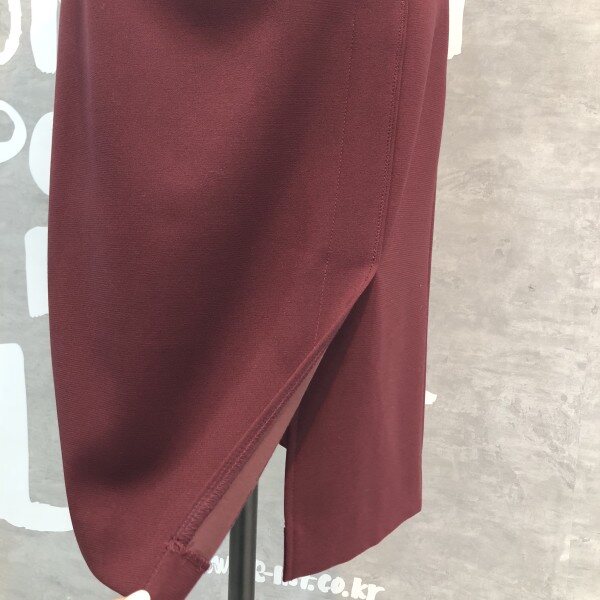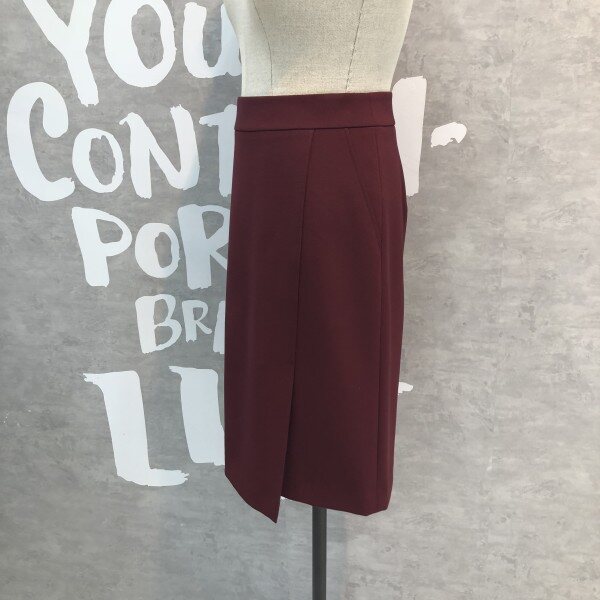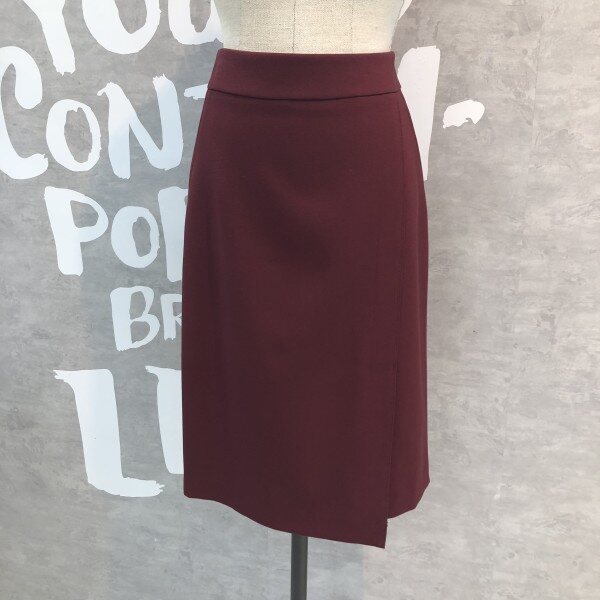 미니멀한 실루엣에 프론트 랩라이크 디자인이 페미닌한 미디 기장의 포멀 스커트입니다