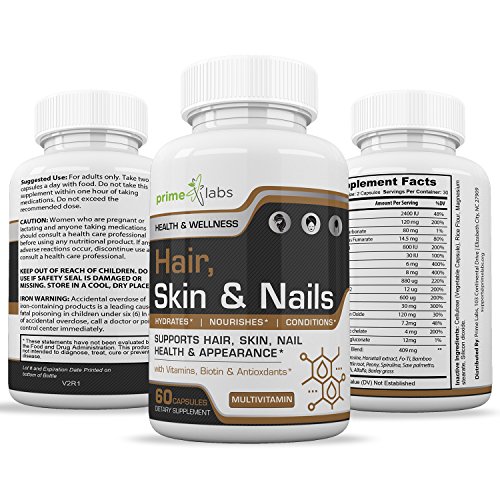 Prime Labs' carefully crafted Hair, Skin, and Nails formula combines the perfect amount of vitamins, minerals, antioxidants and other important nutrients to you get the healthiest hair, skin, and nails you have always dreamed of! This innovative formula contains only the best ingredients known in nature to provide your body with the essential nutrients it needs for hydrated hair, healthy nails, and vibrant skin. Help support your natural beauty from within by trying Prime Labs' Hair, Skin, and Nails supplement!