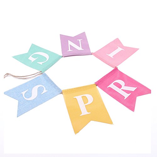 -. Feature : Total length: 58.5 inches long, Material: Imitation linen, pure handmade / Each flag size:(L*H)5.07*7.41 inches / The flags are P.R.Inted with SP.R.ING / Perfect for SP.R.Ing party, hotel, other party, for both house decoration or fixed on trees etc / There is plenty of excess twine on each side, making it easy to hang