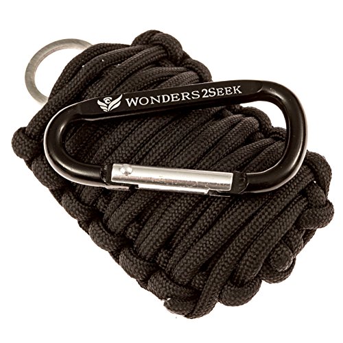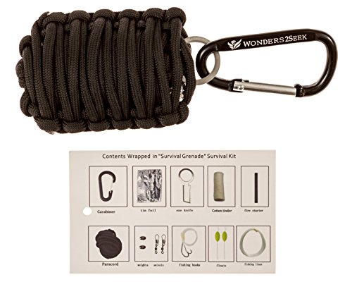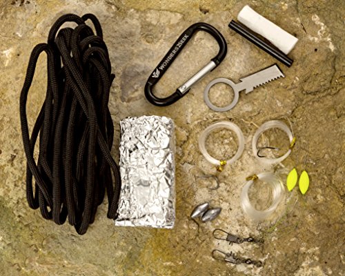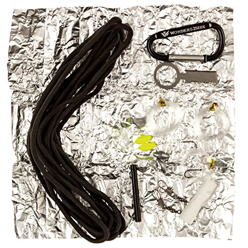 Survival Kit with Fire Starter, Fishing Hooks and Line by Wonders2Seek - Black