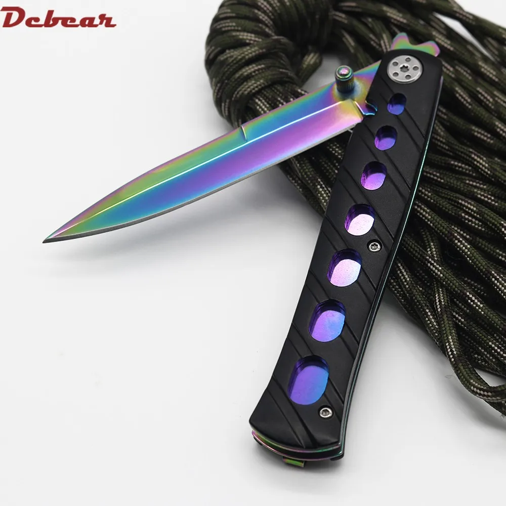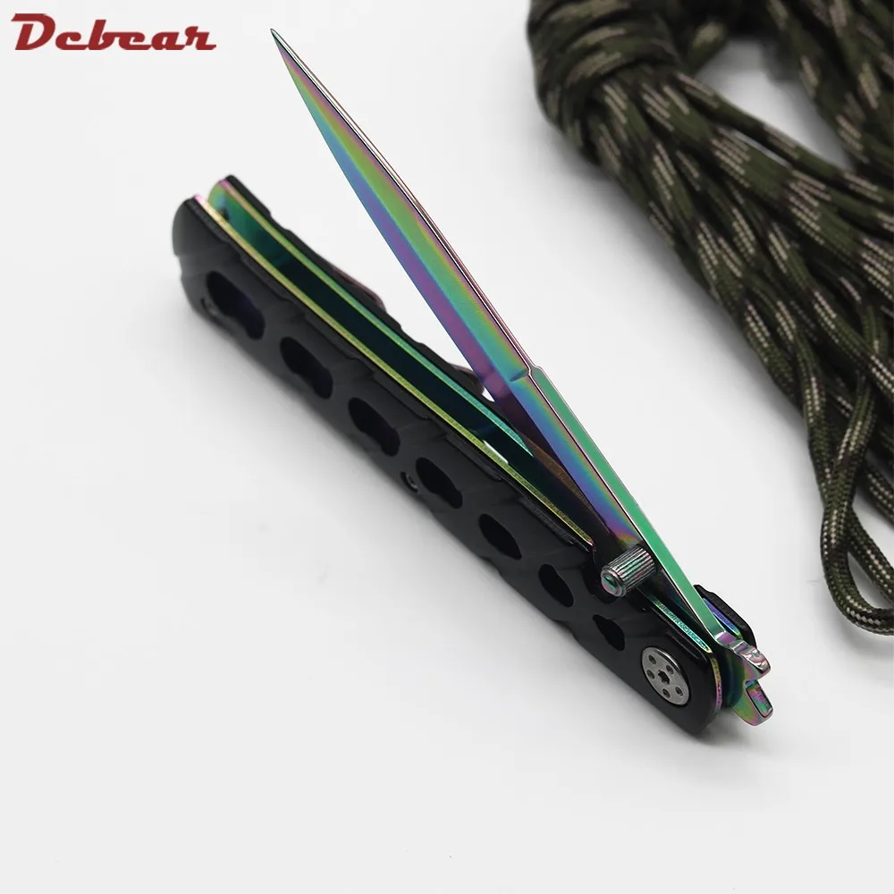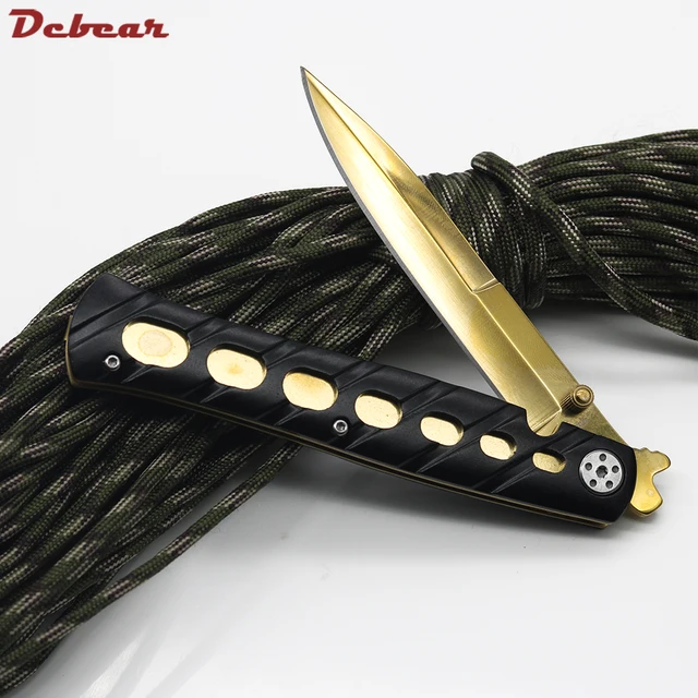 | [해외] Dcbear 고성능 전술 캠핑 접이식 칼 5CR15 블레이드 스틸 핸들 나이프 생존 사냥 도구 EDC |