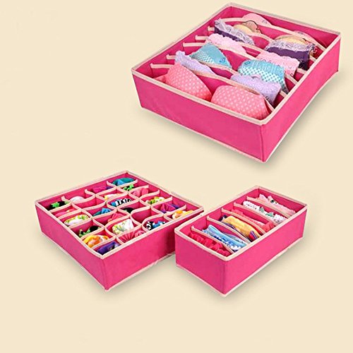 -. Feature : Package included: 6 cell *2 + 8 cell + 24 cell; 6 cell for under wears or ties: 33*16*9cm/13x6x3.5inch; 8 cell for socks: 28*14.5*9 cm/11x5.5x3.5inch; 24cell for scarves, socks or accessories: 33*30*9cm/13x12x3.5inch; 6 cell for bras: 39*30*10cm/15x12x4inch; / Material: The whole boxes are made of non-woven fabric, which is moth-proof, mould-proof, moisture-proof, and very durable. The removal square boards are made of PP (Polypropylene), which is high heat-proof, smooth and light / VARIED SIZE and flexible: There are 4 set of these boxes, 6 cell one for underwear; 8 cell one for socks, 24 cell one for scarves, accessories; another big 6 cell one for bras. Actually you could use these boxes to STORAGE EVERYTHING YOU LIKE / Removable Edge Layer - allows you to remove the edge pieces easily. It is foldable to be kept when not used / Classify underwear, socks, neck ties, scarves, bras, accessories etc. Easy to find which one you want to wear and never need to ransack all of your clothes. Reduce 50% of time for dressing or Searching. Have a nice day from there to begin for everyday