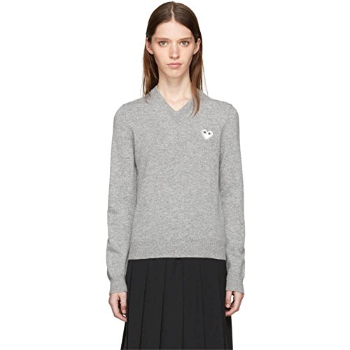 (꼼데가르송) Comme des Garcons Play 레이디스 톱스 니트 스웨터 White Heart Patch V-Neck Sweater [병행수입품]