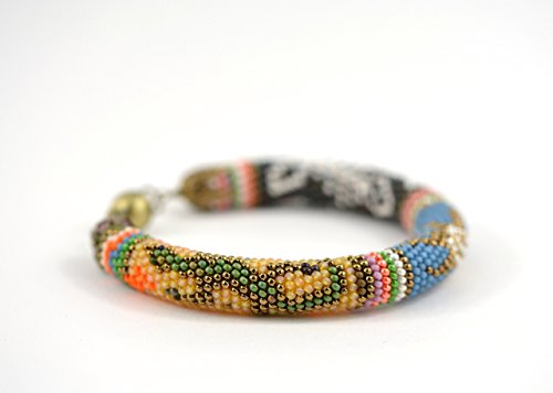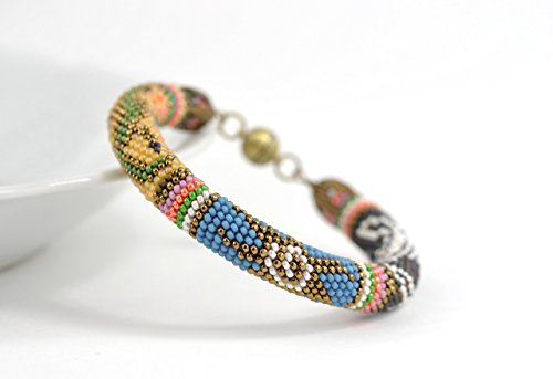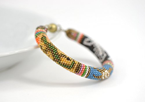 -. Title : African Beadwork Bracelet - Sahara - Bead Crochet Bracelet - Beaded Bracelet - Bangle Bracelet