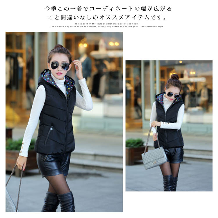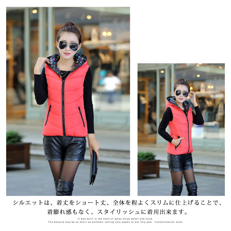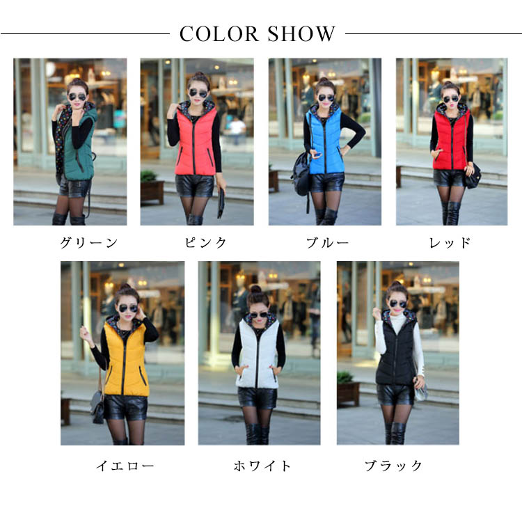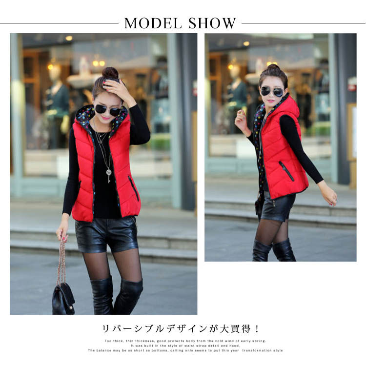 | 全7color展開!タイトシルエットのフード付きベストの登場です。リバーシブルデザインが大買得!シルエットは、着丈をショート丈、全体を程よくスリムに仕上げることで、着膨れ感もなく、スタイリッシュに着用出来ます。インナートップス次第で違い表情が演出できます。今季この一着でコーディネートの幅が広がること間違いなしのオススメアイテムです。 | |