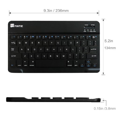 Fintie Ultrathin (4mm) Wireless Bluetooth Keyboard for iOS (Apple iPad Air, iPad Mini 2, iPad 2 / 3 / 4) Function Keys For iOS, 9-Inch Black