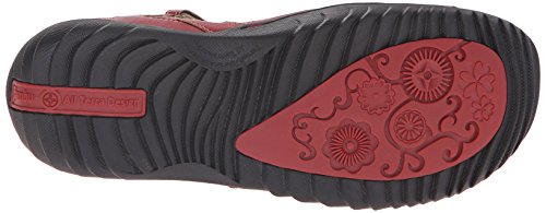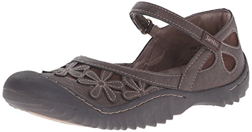 Add a feminine touch to your wardrobe with the Rosetta, a comfortable and durable Mary Jane featuring beautifully crafted floral cutouts and a splash of contrast stitching for some extra color. Two-tone distressed synthetic vegan and microsuede upper Partially recycled rubber outsole Memory foam footbed with leather lining Hook-and-loop closure.Feature