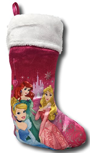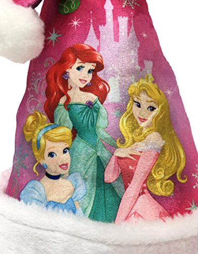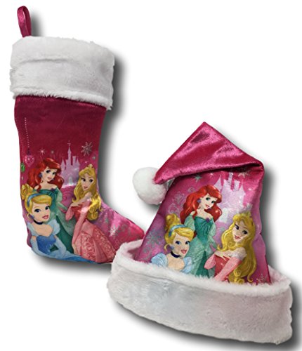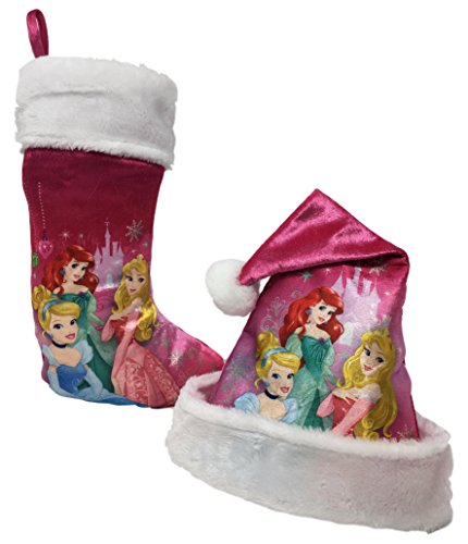 Disney Princess Cinderella, Ariel & Rapunzel Christmas Pink Santa Hat & Stocking Set (Princess Pink Cinderella, Ariel & Rapunzel)