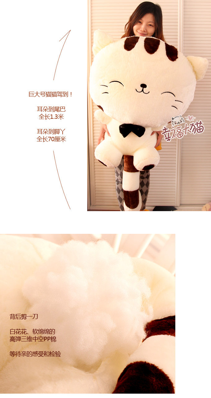 The new models Meng lying meow star struck No full-length 50cm height 30cm mini weighs about 0.3kg Small full-length 60cm height 35cm and weighs about 0.58kg Medium full-length 75cm height 40cm and weighs about 0.8kg Large full-length 90cm height 55cm and weighs about 1.5kg