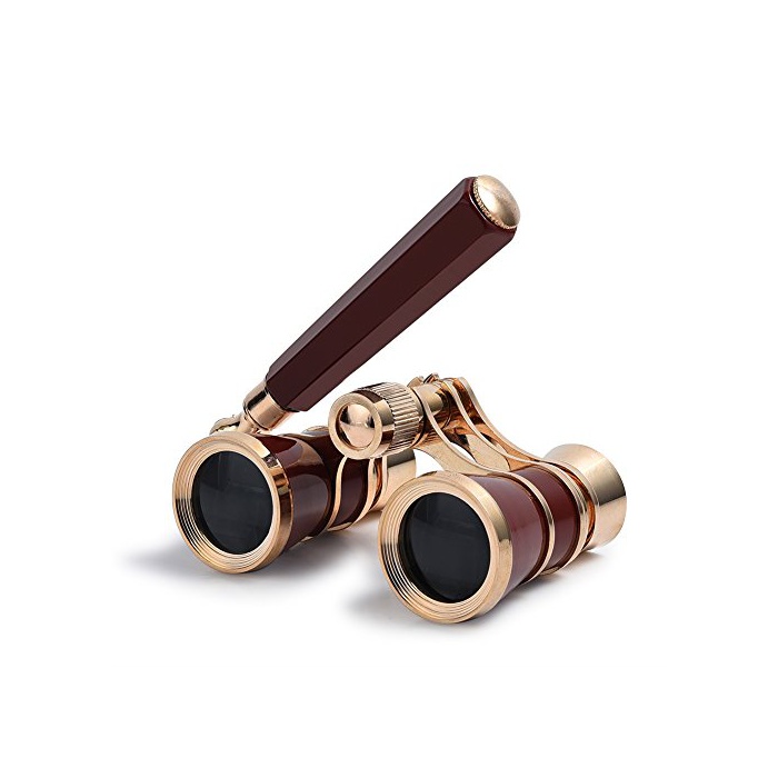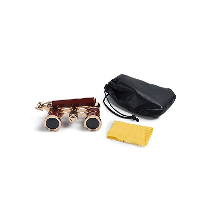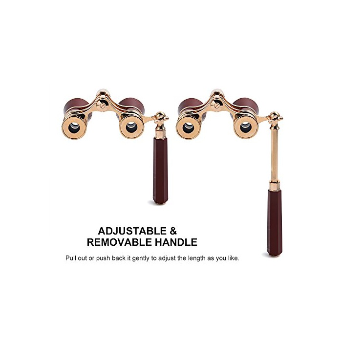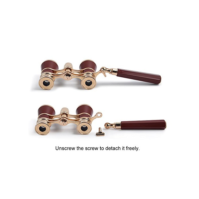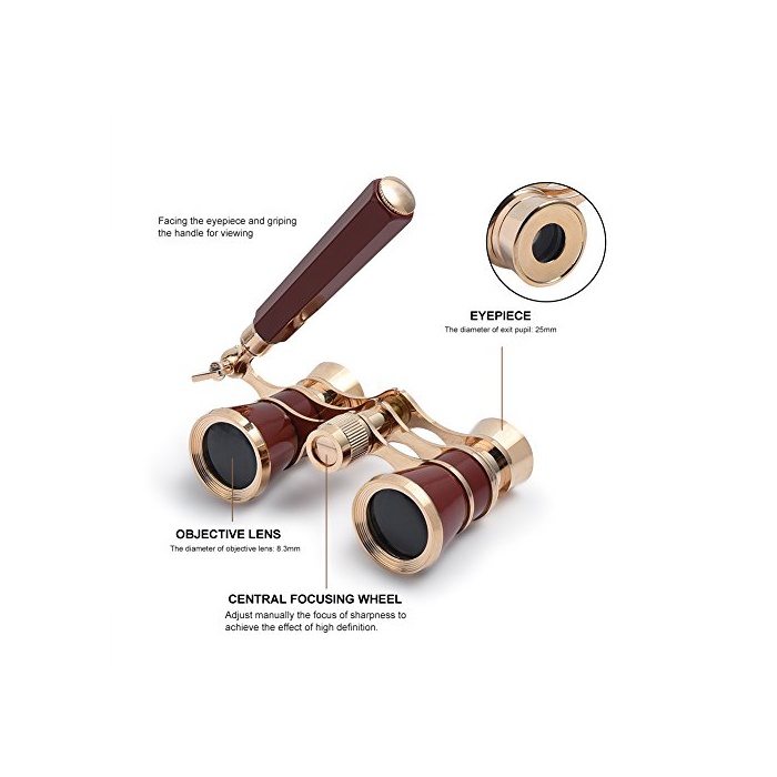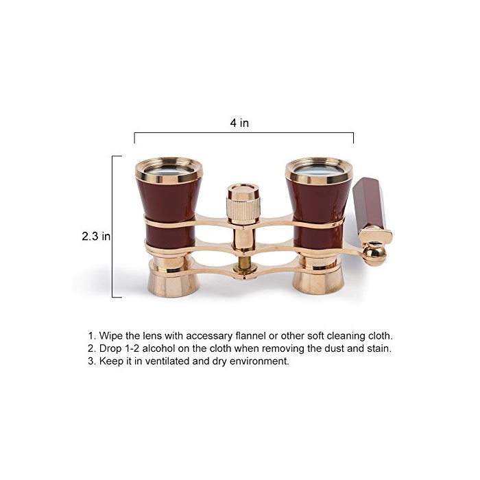 Runacc 오페라글라스 3배 25밀리 구경 소형 경량 쌍안경 신축식 핸들 부착 앤틱 양식
