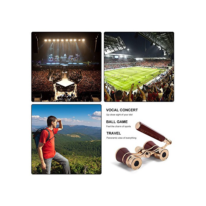 원본상품명: Runacc オペラグラス 3倍25ミリ口 小型 量 眼鏡 伸縮式 ハンドル付き アンティク式 レッド