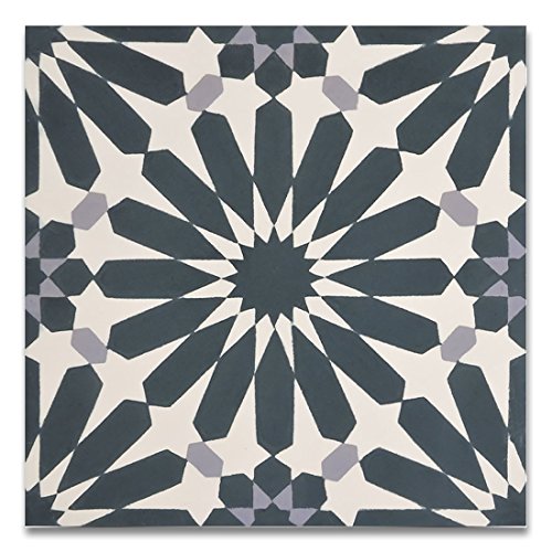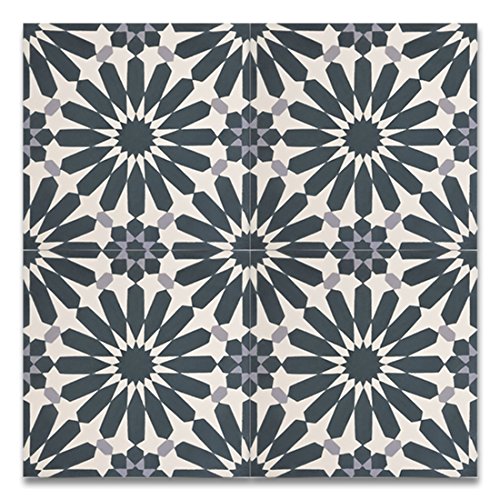 Moroccan Mosaic & Tile House CTP54-03 Alhambra 8’’x8’’ Handmade Cement Tile in Navy Blue and Gray(Pack of 12), Navy BlueWhiteGray