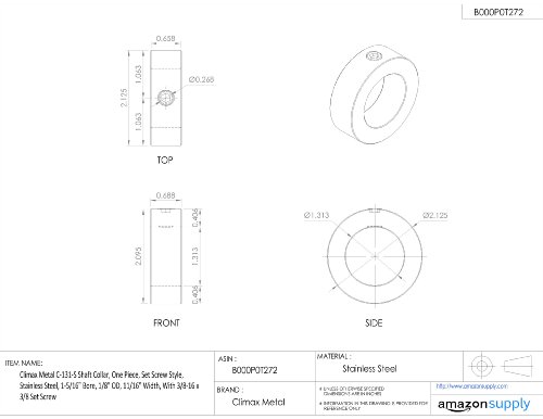 Climax Metal C-131-S Shaft Collar, One Piece, Set Screw Style, Stainless Steel, 1-5/16" Bore, 1/8" OD, 11/16" Width, With 3/8-16 x 3/8 Set Screw