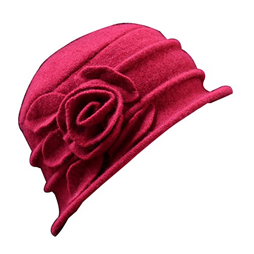 Type: Bowler Hat Material: Wool Gender: Women's Quantity: 1 Pc Feature: Soft Warm, Comfortable to Wear, Flower Decor Circumference: 57cm/22.44" (Approx.)