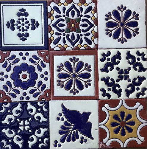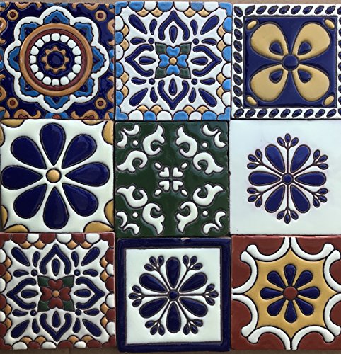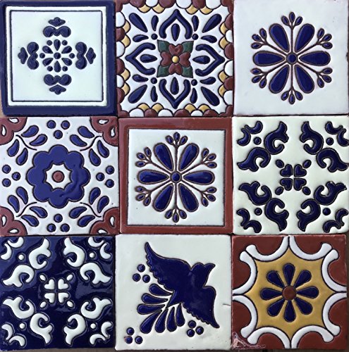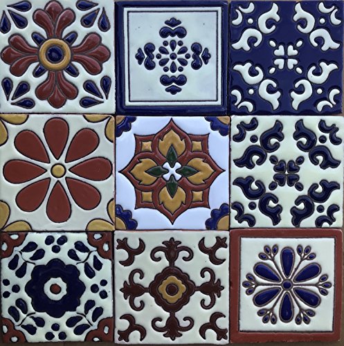 Ceramic Relief Talavera Mexican Tile 4x4", 9 MIXED DESIGNS (NO STICKERS) 3
