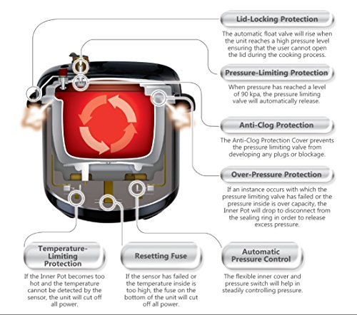 6 Multifunctions: Rice & Risotto, Potatoes & Yams, Meat & Chicken, Beans & Grains, Soup & Stew, and Keep Warm/Browning