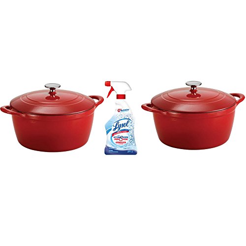 6.5 quart capacity, richly enameled cast iron, self-basting, oven to table cookware. Superior heat retention and distribution; perfect for baking, grilling, or slow cooking Self-basting condensation ridges on the lid interior Stainless steel lid knob; compatible with gas, electric an induction cooktops Oven safe to 450 degrees Farenheit.