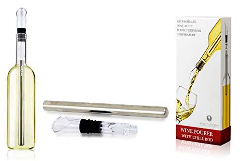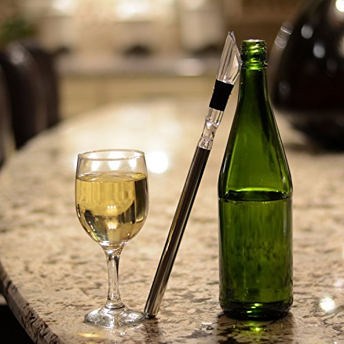 [Description] UNMATCHED FUNCTIONALITY & ELEGANT DESIGN: Keeps your bottle of wine chilled to the perfect temperature. Soft rubber stopper creates a drip-free seal when pouring_ and aerator maximizes flavor. The sleek presentation of this wine chiller will be a hit at your next gathering. NO MORE MESSY_ WET BOTTLES: This wine chiller stick is ready to go after just 30 minutes in the freezer and will keep wine chilled without diluting it or getting the bottle wet. Just screw the plastic pourer into the chiller stick_ insert into any standard size bottle of wine_ and voila. Keep the ice buckets in the closet. NO MORE DRIPS AND SPILLS: Don``t waste a drop of your favorite whites and reds! You can use the wine pourer with or without the iceless wine chiller rod attached. EXCEPTIONAL QUALITY: The wine chiller stick_ stopper_ aerator_ and pourer are made using the highest quality materials_ ensuring durability and unparalleled functionality. SIZE : Overall measurements are 12.6 long x 1 inch diameter.