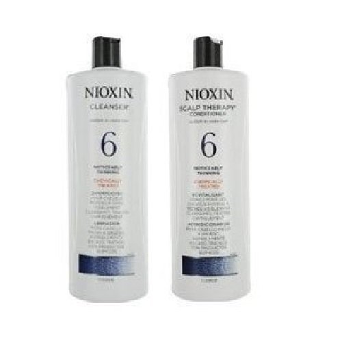 -. Feature : Nioxin System 6 Cleanser & Scalp Therapy For Noticeably Thinning Hair Duo Set 33.8 oz For Medium/Coarse, Natural or chemically treated, Noticeably Thinning Hair / SmoothPlexTM provides moisture, natural shine and smooth control to hair / Activ-RenewalTM delivers bio nutrients for a more youthful-looking scalp and fuller, healthier-looking hair / Scalp AccessTM Delivery System helps protect nutrients at they moisturize and energize the scalp and hair combined with SPF 15 scalp protection against UV rays / 33.8 oz each bottle