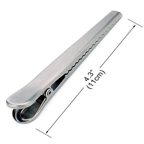 - These stainless steel jaw bag clips keep even the heaviest duty bags closed. Made with 4?¡À long stainless steel, you can rest assured they?¡¥ll hold up to all the abuse you can throw at them. The clips create an airtight seal, enabling you to keep foods fresh for much longer.