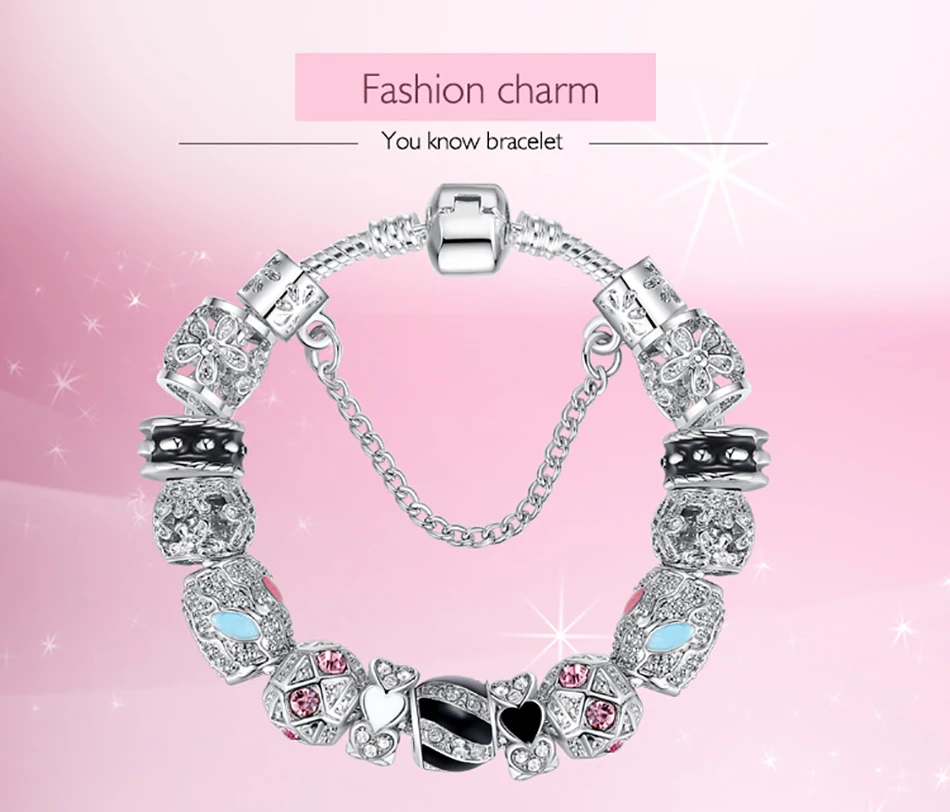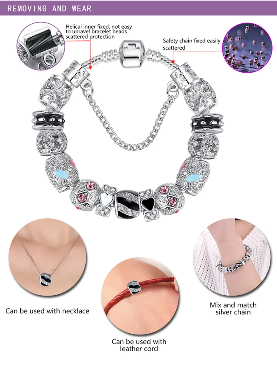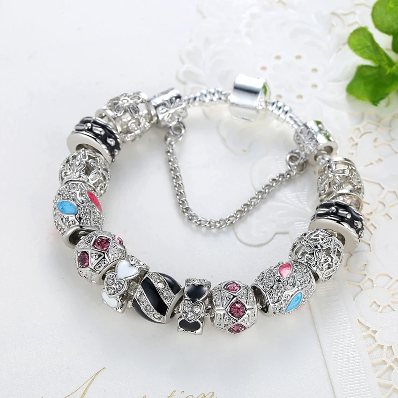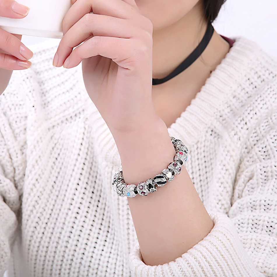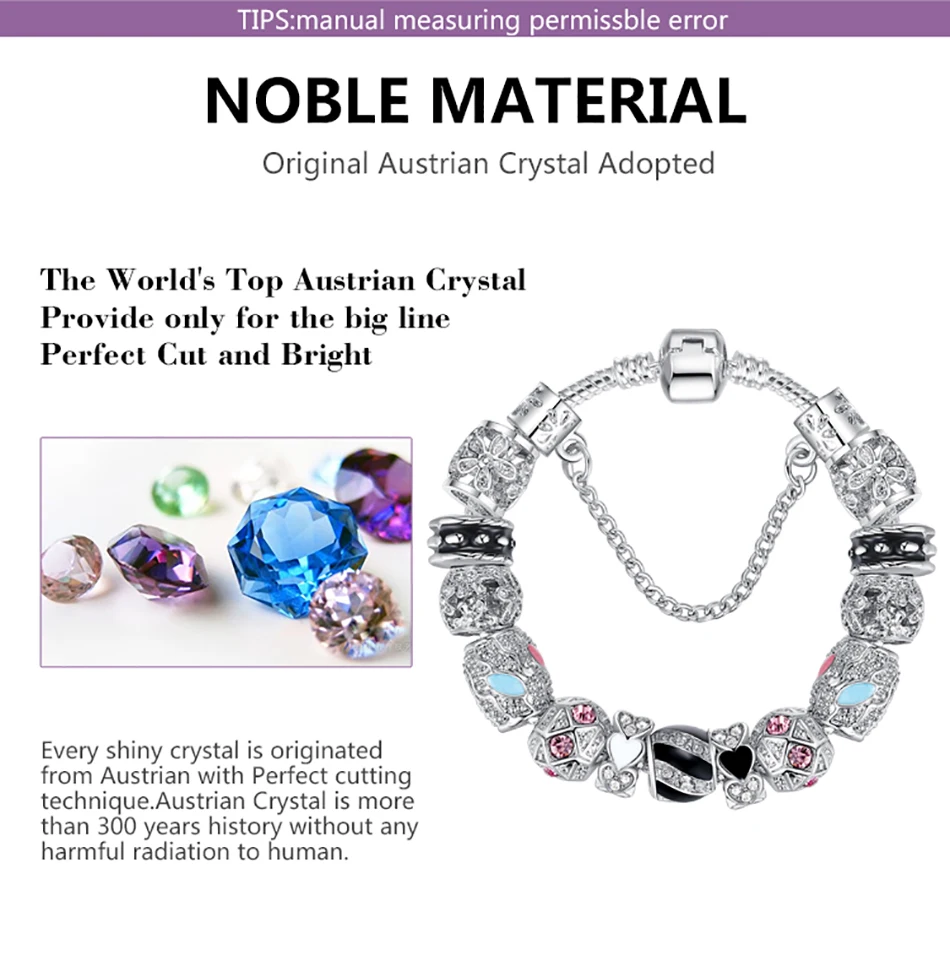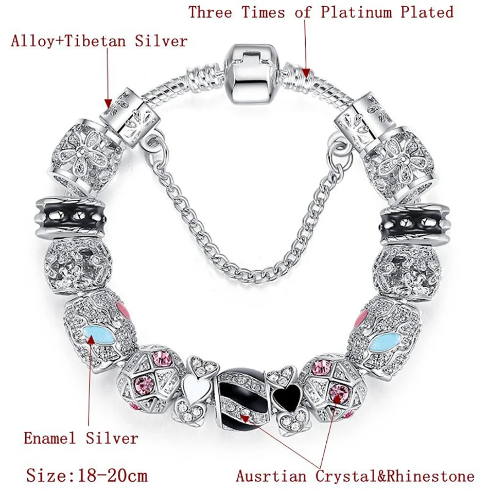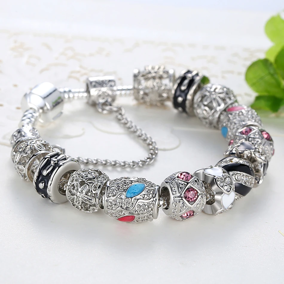Original Pulserias Plusera Mujer:European crystal Beads 925 silver bracelet
