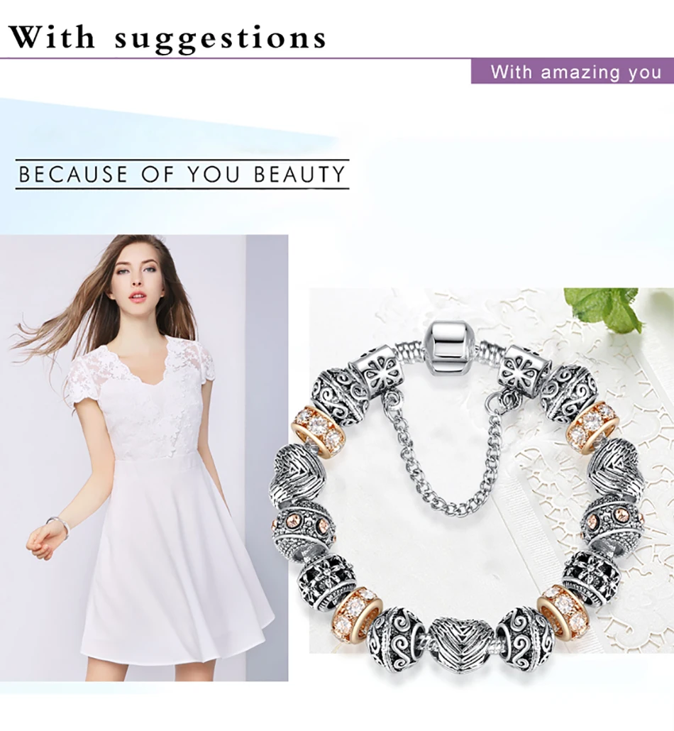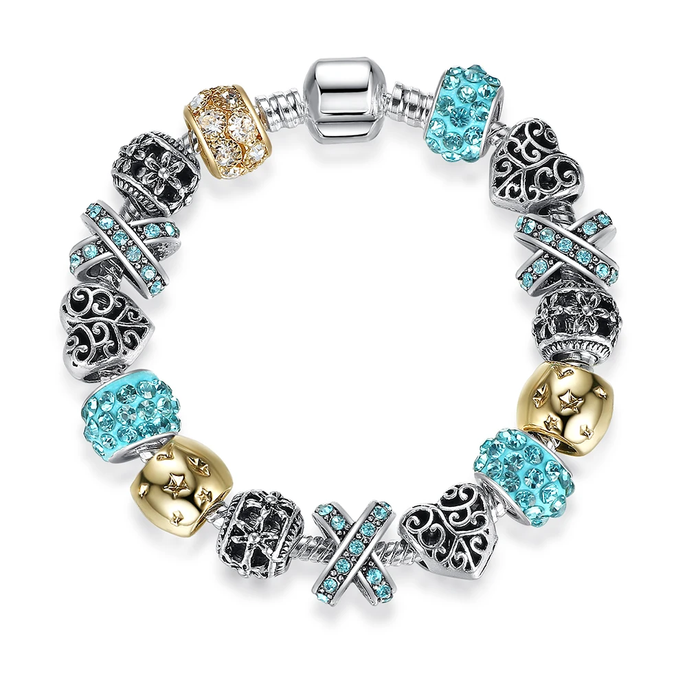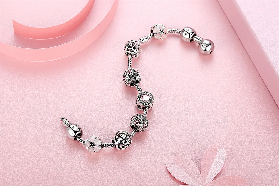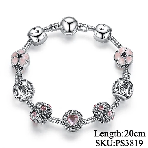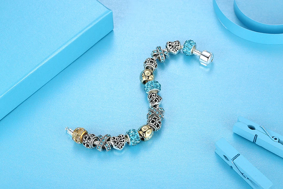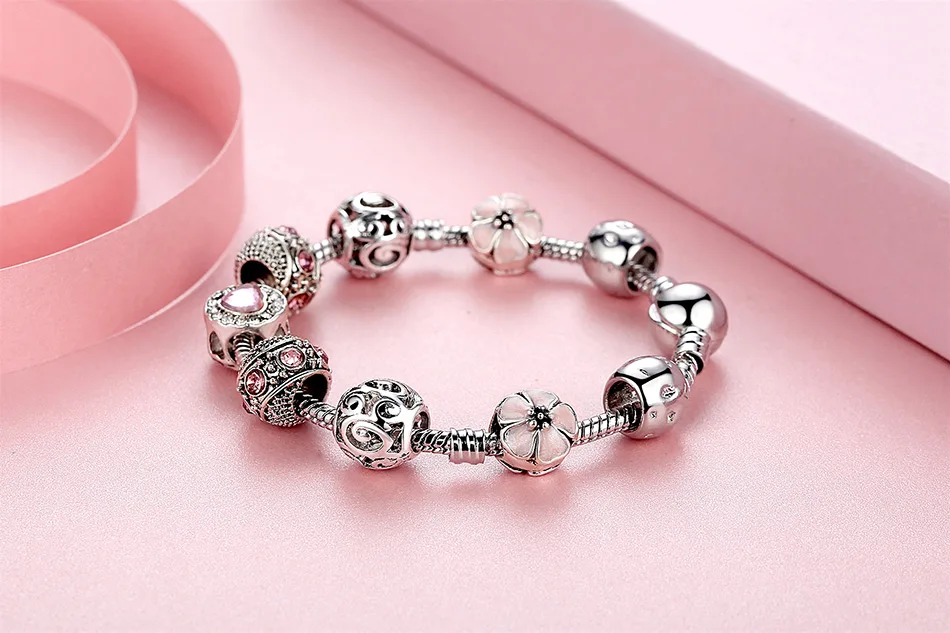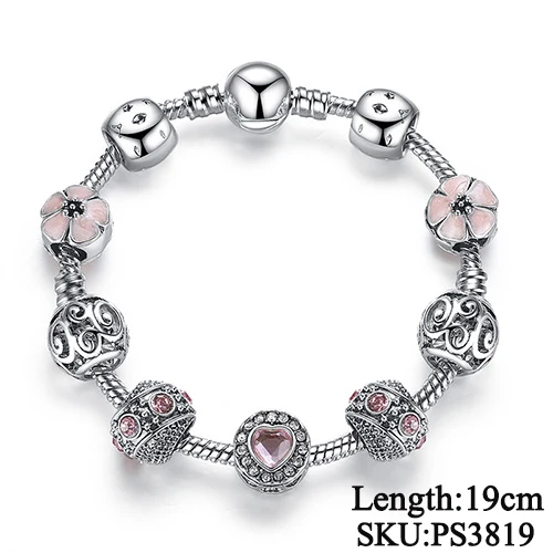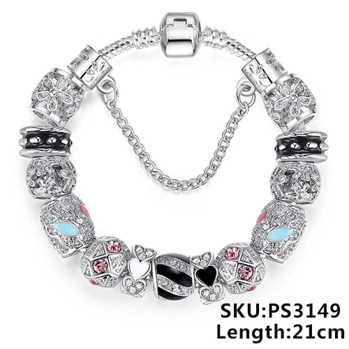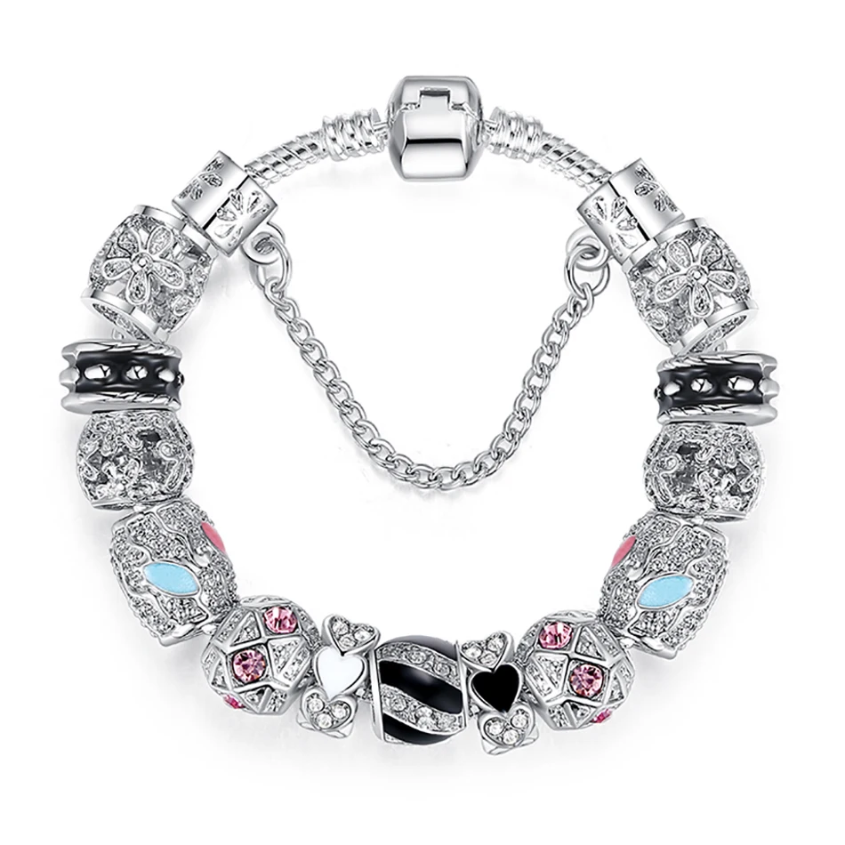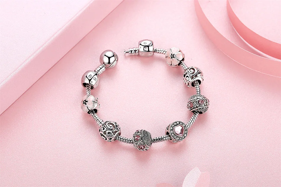 Original Pulserias Plusera Mujer:European crystal Beads 925 silver bracelet