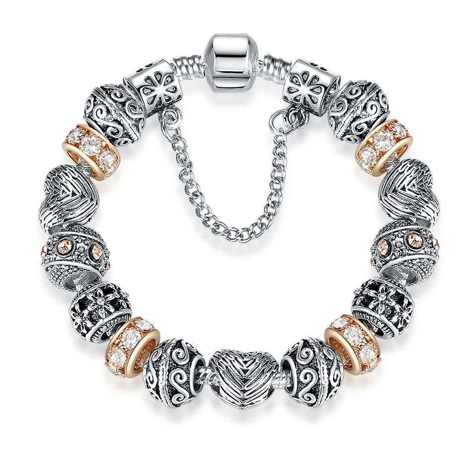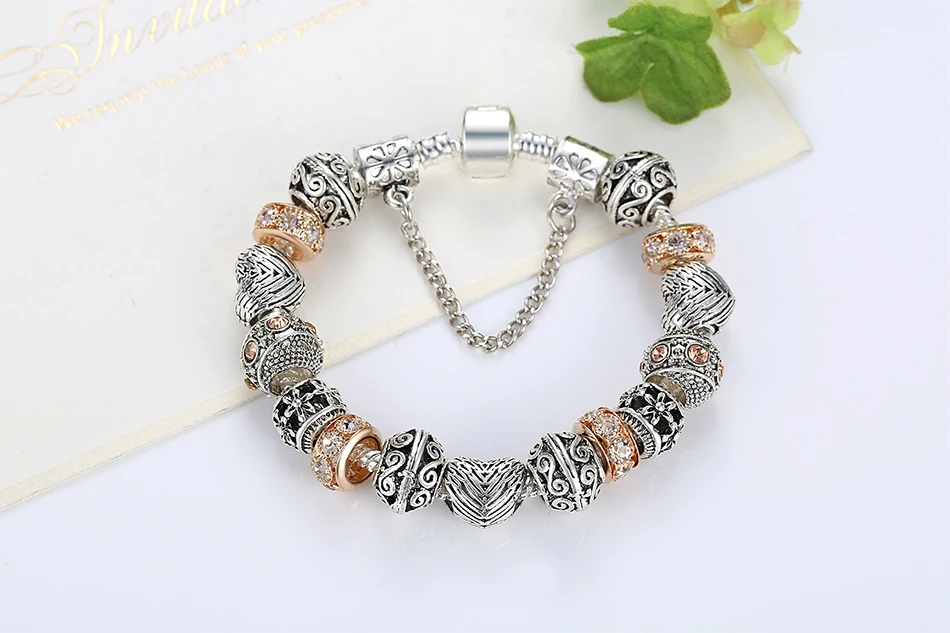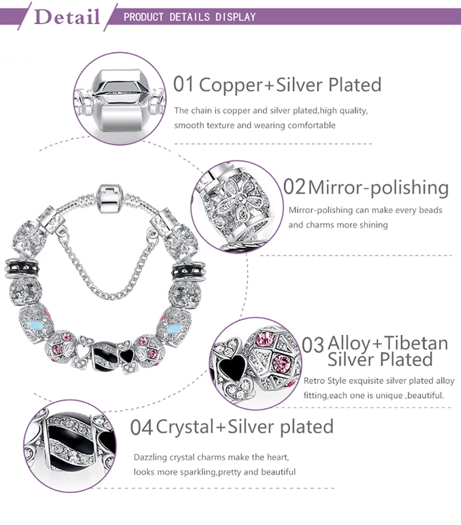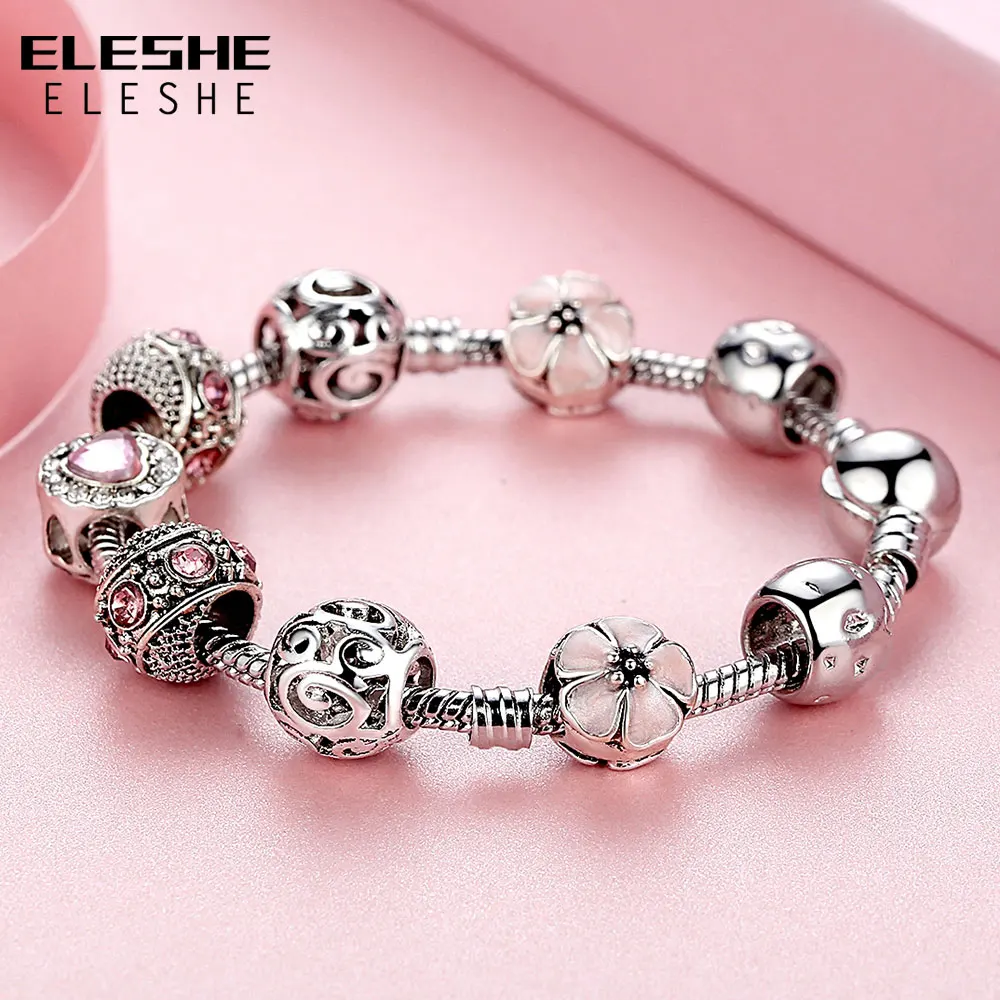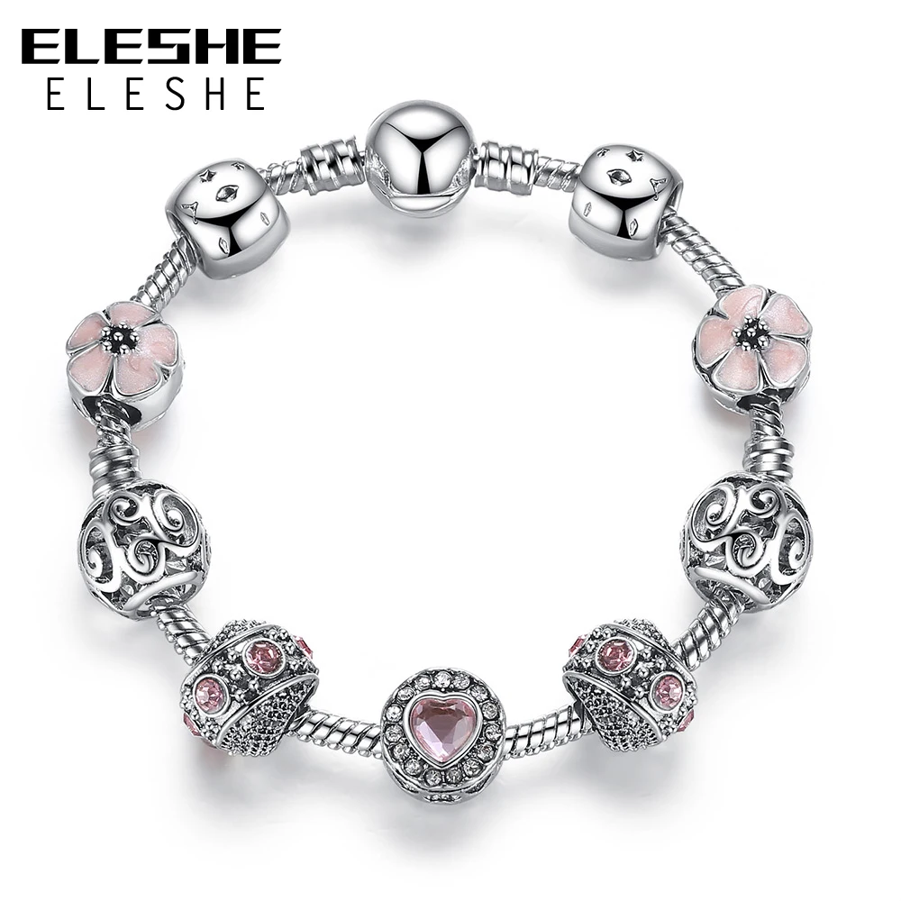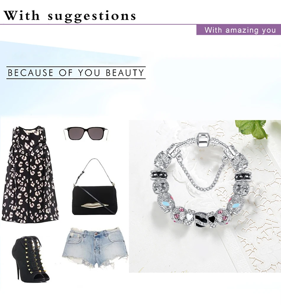 Original Pulserias Plusera Mujer:European crystal Beads 925 silver bracelet
