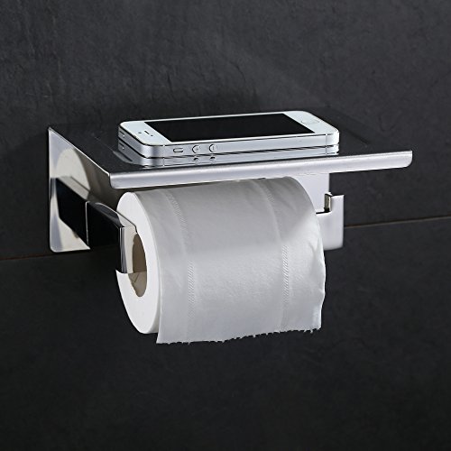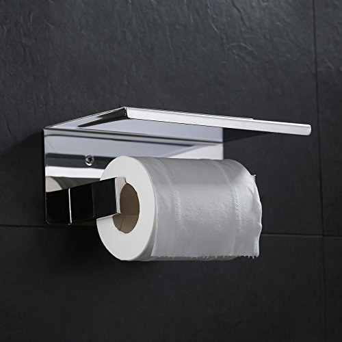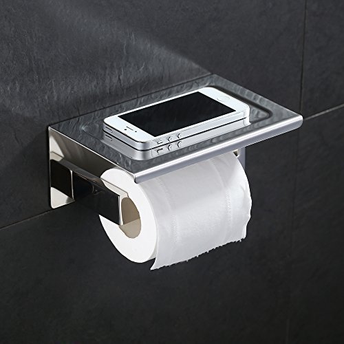 Angle Simple JA-001 Stainless Steel Toilet Paper Tissue Holder with Mobile Phone Storage Shelf, Polished Stainless Steel