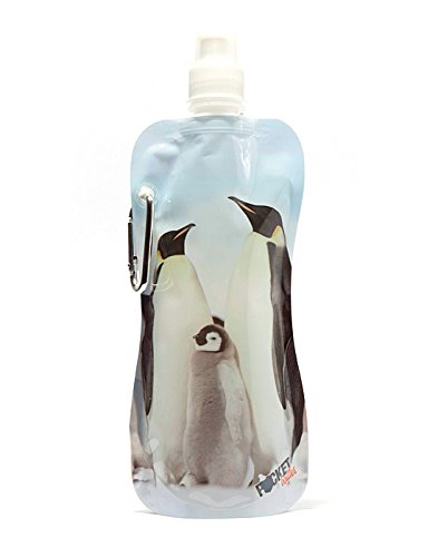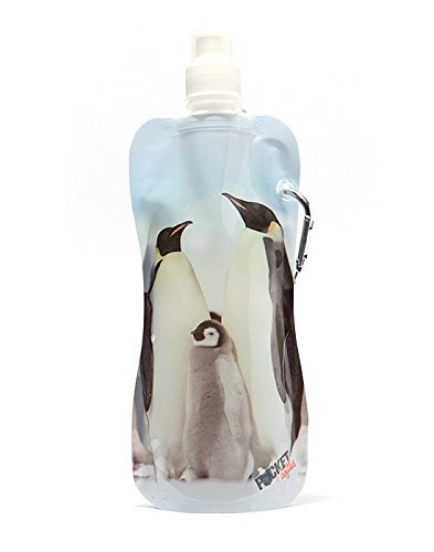 Zees Inc Pocket Bottles Cb1023 Penguins Foldable Bottle, 16 Oz, Multicolor