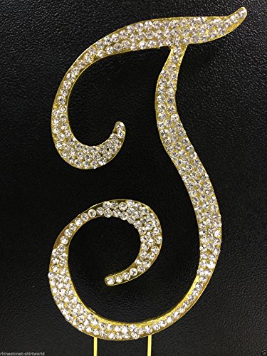 Crystal Rhinestone Covered Gold Monogram Wedding Cake Topper Letter T