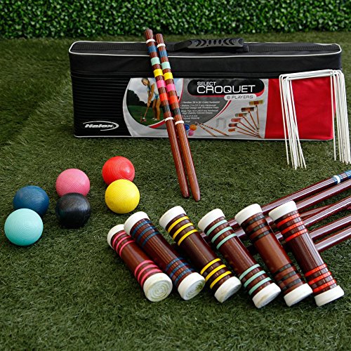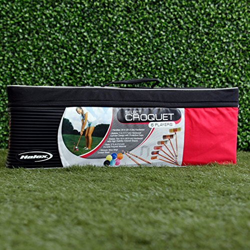 Studio : Ball Bounce and Sport Inc Publisher : Ball Bounce and Sport Inc Binding : Toy Product Description One more reason to look forward to your weekends!The Halex Select Croquet Set is everything you need to enjoy your weekends like never before. This croquet set comes complete with equipment for six players, along with game rules and instructions. A handy carrying bag makes transportation and storage easy.Indulge your love for a game of croquet with the affordable and durable Halex Select Croquet Set. About Regent Sports Grateful for their ongoing success for over 70 years, Regent Sports has provided children and their families with high-quality sporting goods products under the Halex, MacGregor, Mitre, and Regent brands. Regent Sports is happy that its family is able to provide yours with innovative products, excellent value, and hours of family fun. Additional limited-time savings reflected in current price. Six 24-in. hardwood mallet handles. Six 7-in. hardwood mallet heads with caps. Two 16-in. hardwood stakes. Six polymer balls. Nine vinyl-coated steel wickets. Sturdy carrying/storage case. Complete set of rules. 0
