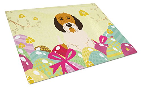 Caroline's Treasures Easter Eggs Petit Basset Griffon Veenden Glass Cutting Board Large, Multicolor