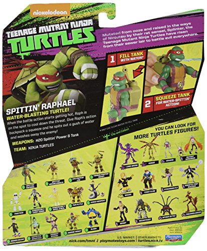 -. Binding : Toy -. Brand : Teenage Mutant Ninja Turtles -. EAN : 0043377906247 -. Edition : 1st -. Feature : Each Turtle is wearing his signature bandana and comes packed with their two core Ninja weapons / Each turtle figure is uniquely sculpted to capture the individual personalities of the characters from the Teenage Mutant Ninja Turtles TV show / Wash away the enemy / 2012 Viacom International Inc All Rights Reserved. TEENAGE MUTANT NINJA TURTLES and all related titles, logos and characters are trademarks of Viacom International Inc -. IsAdultProduct : 0 -. ItemPartNumber : 90624 -. Label : Playmates - Toys -. Manufacturer : Playmates - Toys -. Model : 90624 -. MPN : 90624 -. PackageQuantity : 1 -. PartNumber : 90624 -. ProductGroup : Toy -. ProductTypeName : TOYS_AND_GAMES -. Publisher : Playmates - Toys -. Studio : Playmates - Toys -. Title : Teenage Mutant Ninja Turtles Classic Spittin' Raphael Action Figure -. UPC : 043377906247 -. Warranty : No Warranty