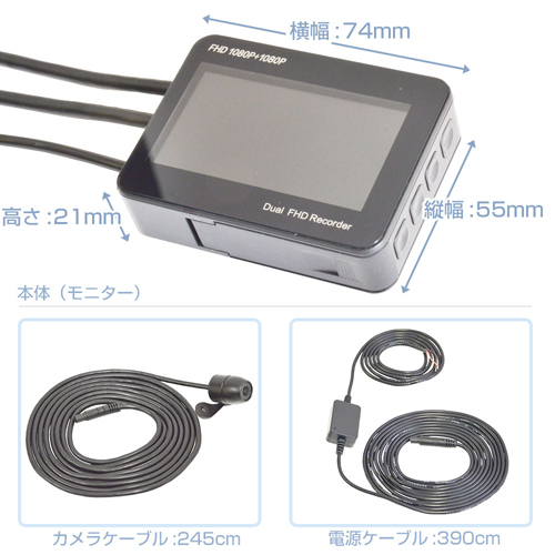 ●2つのカメラで死角をなくした【オンボードカメラにもなる「バイク用フルHD前後ドライブレコーダー」】が登場です!