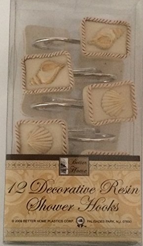 Shell Design - 12 Decorative Resin Shower Curtain Hook Set