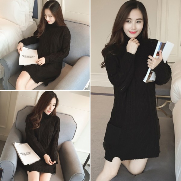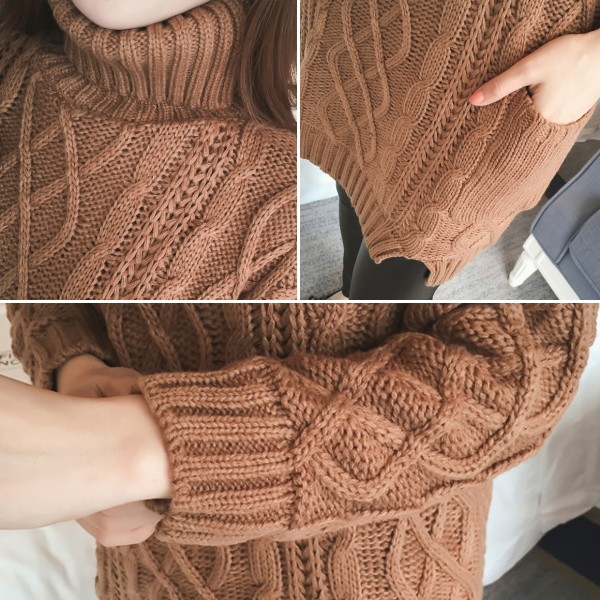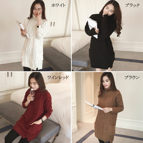 | 商品名 | ケーブル編み タートルネック チュニックニットセーター |