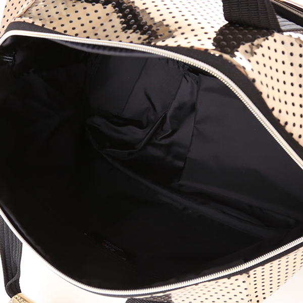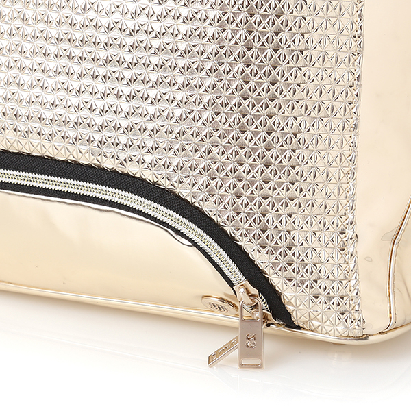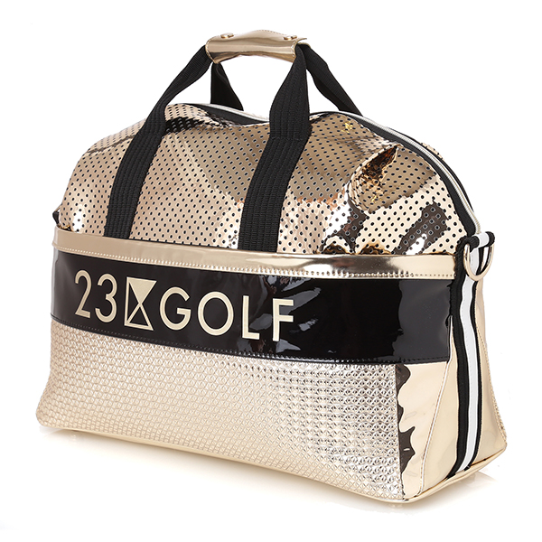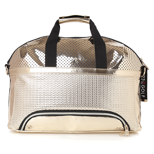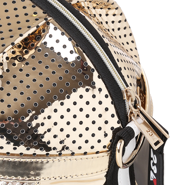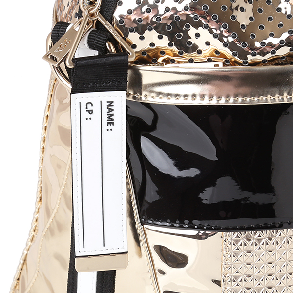 - 골드 미러 유광 합성피혁 소재에 펀칭 배색이 포인트