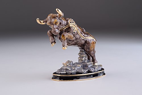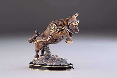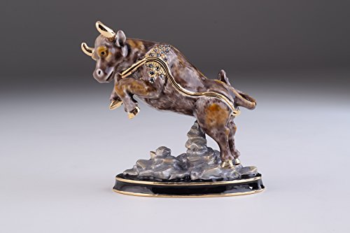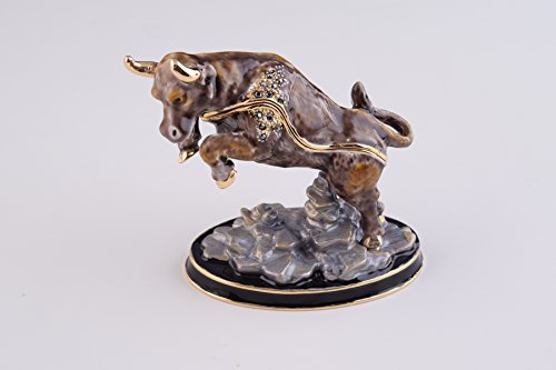 Brown Bull Trinket Box Decorated with Swarovski Crystals