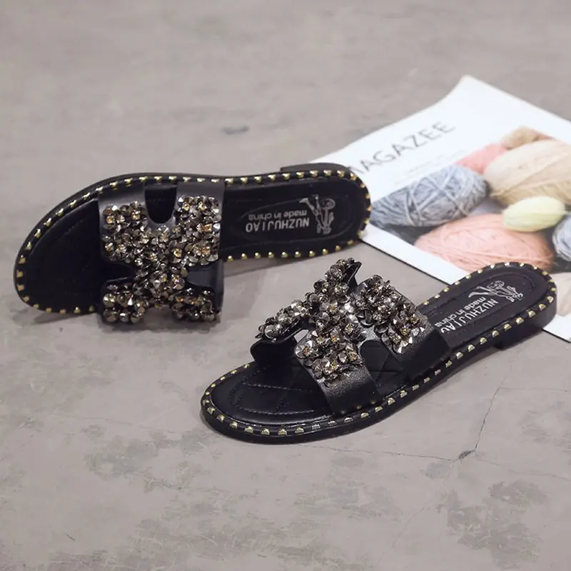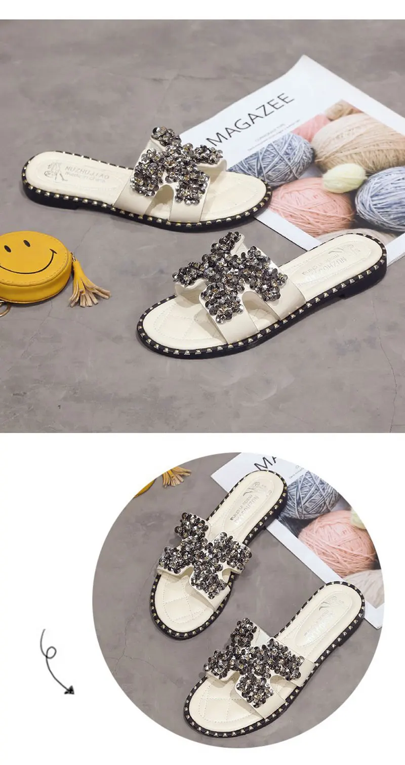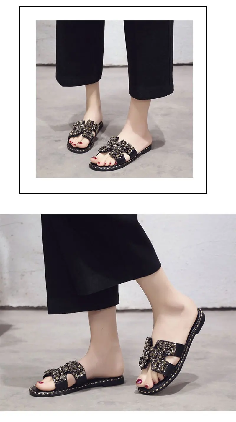 Women Slippers Shoes:Crystal Spring Summer Beach Women Flip Flops