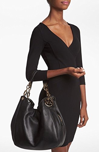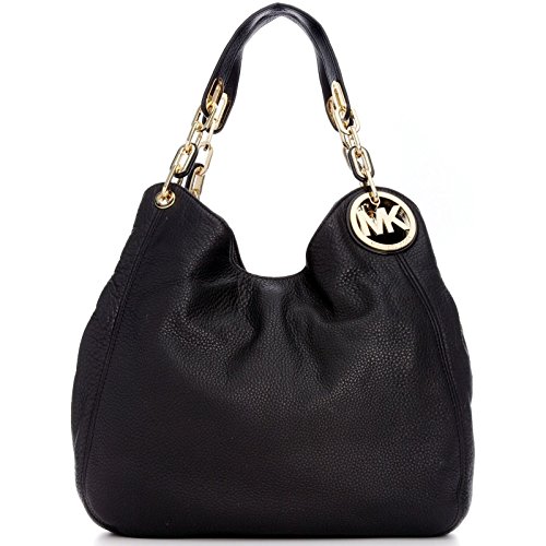 -. Binding : Accessory -. Brand : MICHAEL -. EAN : 0885949963926 -. Feature : Venus Leather / Interior features side snap compartments and middle zip compartment with 4 slip pockets and key hook. / Double top handles with 10" drop. / Top zip and snap closure. Logo medallion detail; chain-link accenting at straps; / 13-1/4" W x 9-1/2' H x 3" D -. Model : 30F2TFTE3L-001 -. MPN : 30F2TFTE3L-001 -. PackageQuantity : 1 -. PartNumber : 30F2TFTE3L-001 -. ProductGroup : Shoes -. ProductTypeName : HANDBAG -. Title : Michael Large Fulton Shoulder Tote Black -. UPC : 885949963926