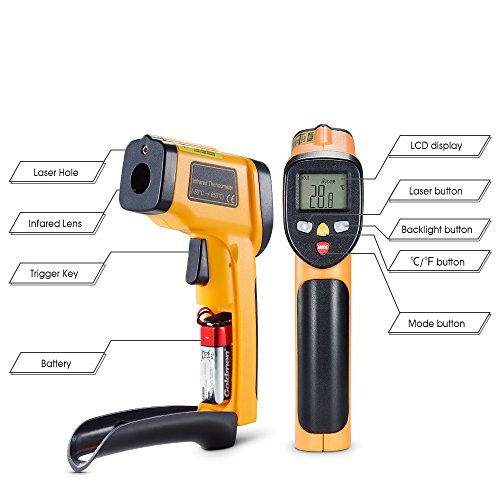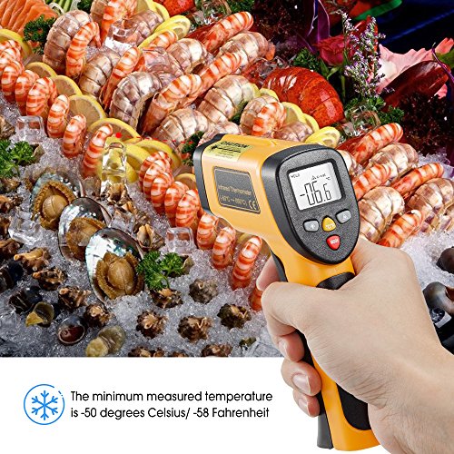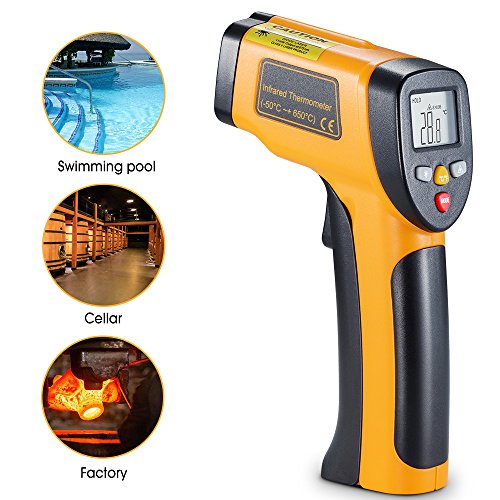 - VERSATILE DESIGN: With this Non-contact Digital Thermometer, you can quickly and easily get instant surface temperature of nearly all inanimate object as you wish. You can check the surface temperature of food and meat when cooking or barbeque. You can also scan for cold air source in your home, or check your car’s cooling system. Perfect for both indoor and outdoor uses.