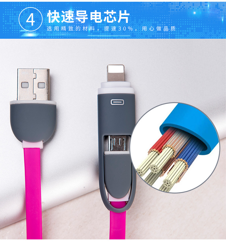 -High-speed transmission, rapid charge, the maximum support 2.1A current through, to achieve fast charging and data transmission.